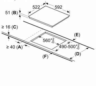 | Kích thước lắp đặt (C x R x S) | 51 x 560 x 490-500 mm |