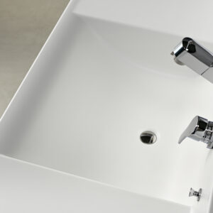 Chậu rửa mặt liền khối DH của thương hiệu Yoshimoto Global có phần chậu và phần mặt đá dài được ép liền thành một khối nhờ công nghệ ép hiện đại dưới nhiệt độ và áp suất cao. Bạn không cần mua mặt đá và chậu rửa rời rồi tốn công cắt mặt đá và gắn chậu âm bằng keo silicon. Công nghệ chậu liền khối này mang đến vẻ đẹp hoàn mỹ, chất lượng vượt trội và tiện ích tối đa cho không gian chậu rửa mặt.