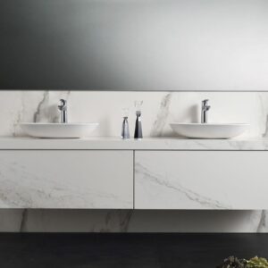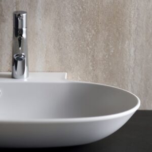 Chậu rửa mặt đặt bàn của thương hiệu Yoshimoto Global có bề mặt trắng mờ hiện đại. Chậu nổi bật với đường viền mỏng, sắc nét nhờ làm bằng vật liệu đá cẩm thạch nhân tạo BMC chỉ dày 6mm nhưng khó nứt mẻ và chống va đập vượt trội.