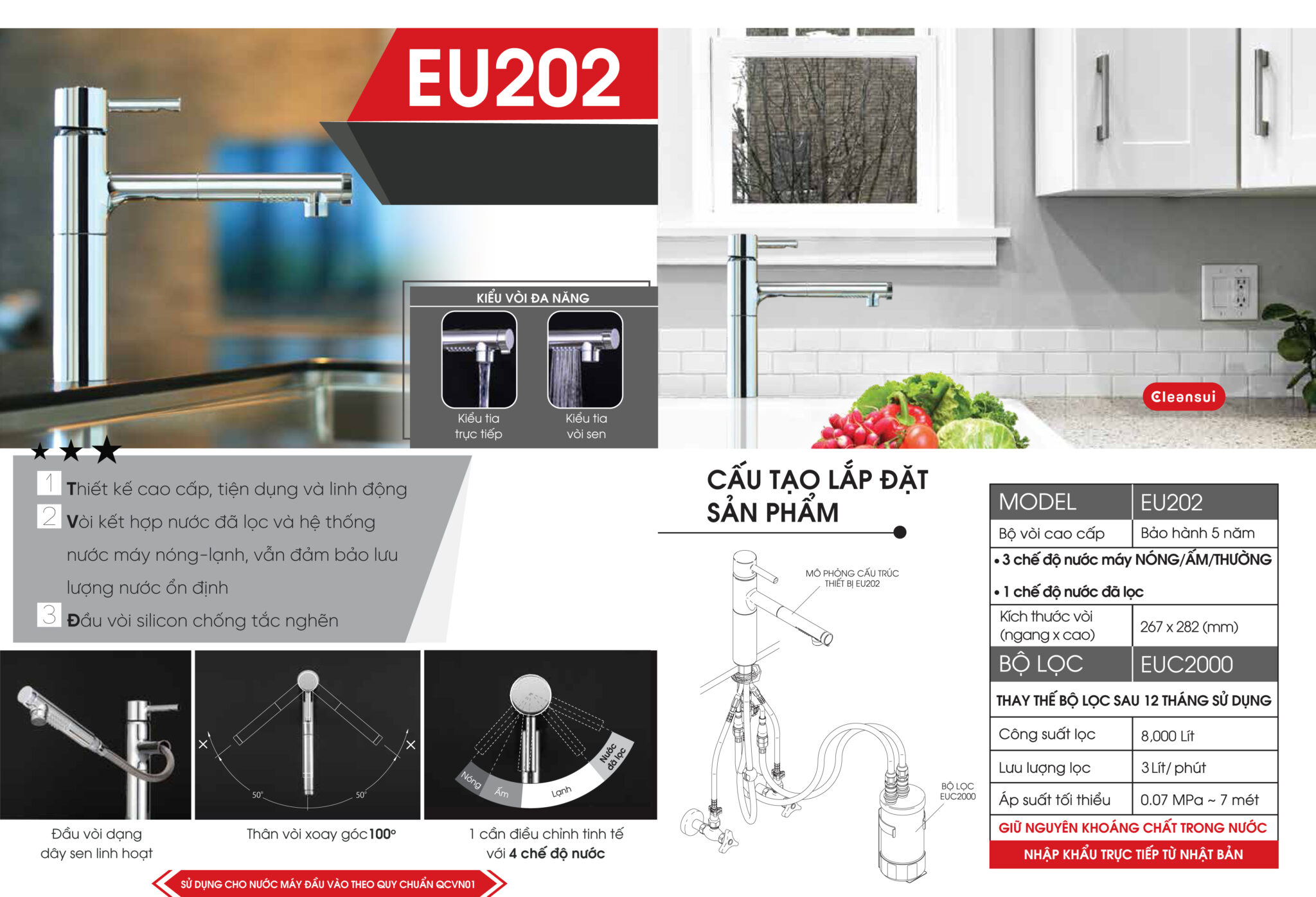 Thiết bị lọc nước CLEANSUI tích hợp lắp dưới bồn rửa – EU202