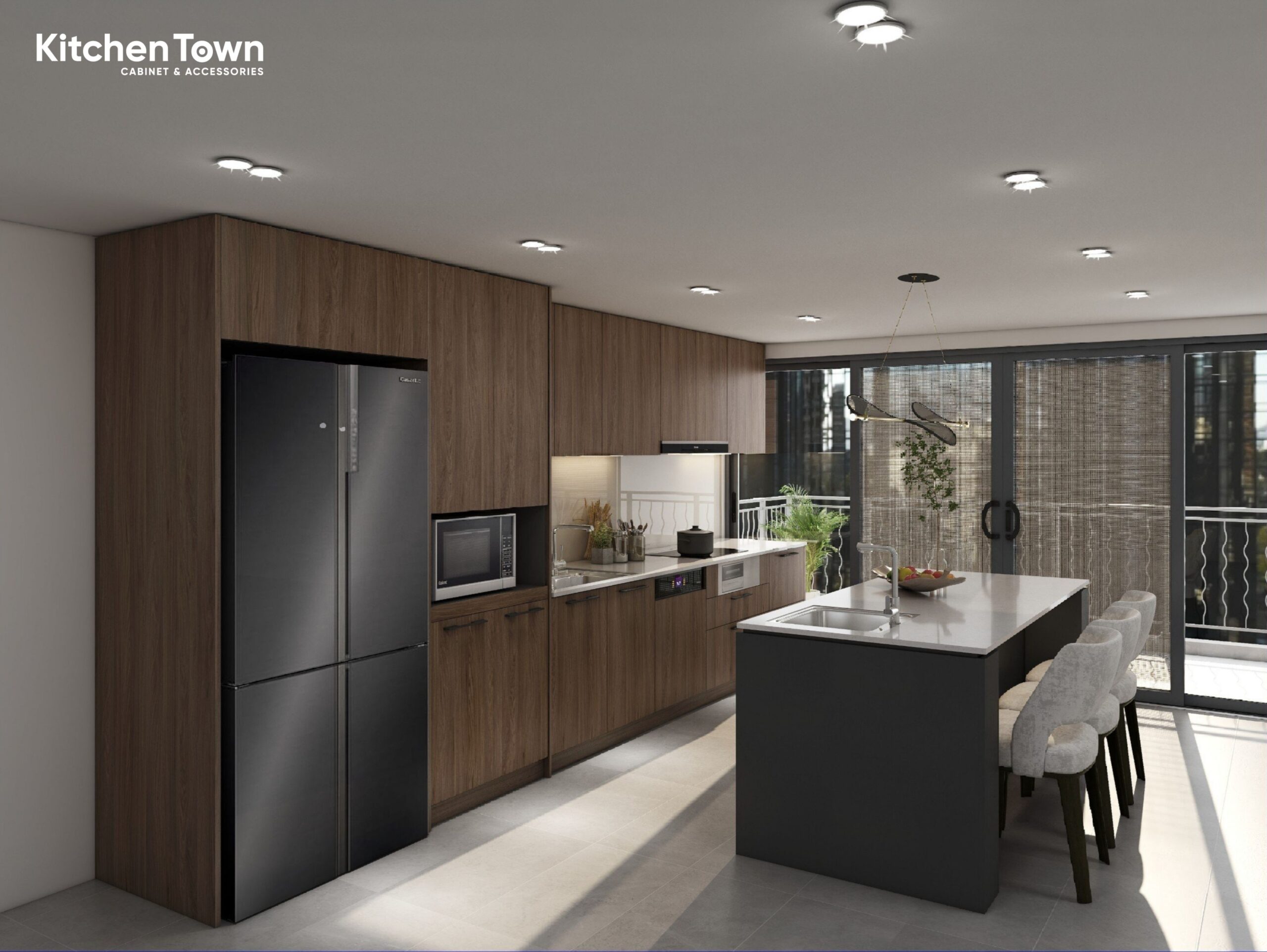 Tủ bếp E-Class là một dòng tủ bếp hiện đại với thiết kế tối giản, tinh tế và chú trọng vào sự tiện nghi. Các tủ bếp này thường được làm từ chất liệu cao cấp như gỗ công nghiệp MDF phủ veneer hoặc laminate, tạo cảm giác sang trọng và bền bỉ. Màu sắc của tủ bếp E-Class thường có sự kết hợp giữa các tông màu trung tính như nâu, xám, trắng hoặc đen, giúp không gian bếp trở nên hiện đại và dễ phối hợp với các vật dụng khác. Các chi tiết như tay nắm tủ thường được thiết kế tinh giản, tạo nên sự thanh thoát cho tổng thể. Tủ bếp E-Class không chỉ đẹp mà còn tối ưu hóa công năng, mang lại sự tiện lợi cho người sử dụng.