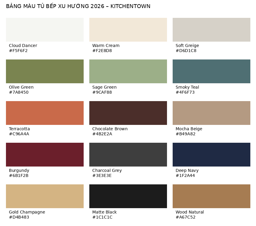 Xu Hướng Màu Sắc Tủ Bếp 2026: Tinh Tế – Ấm Áp – Gắn Kết Thiên Nhiên
